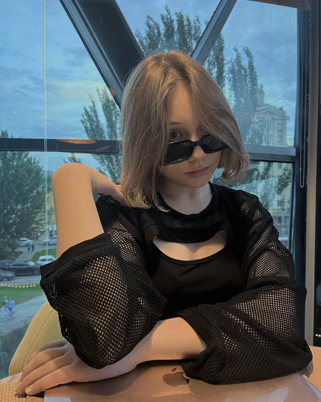 Девушка в кожанном костюме, киберпанк