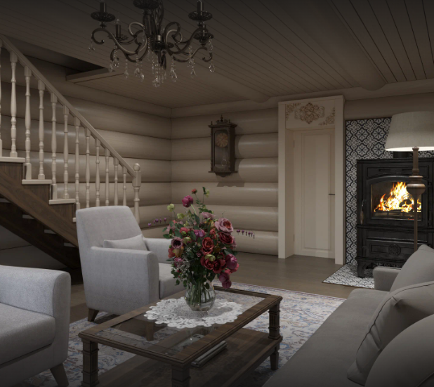 Задача состояла в том, чтобы сделать светлый интерьер в классическом стиле.