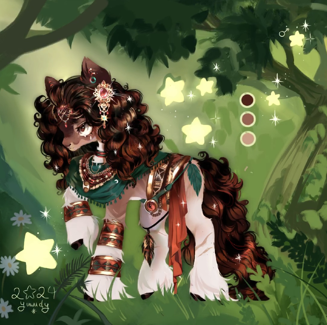 Заказчик (частное лицо; коллекционер дизайнов) обратился с просьбой разработать персонажа пони в стиле кантри. Срок был - два месяца. В процессе работы заказчик решил поменять стиль на восточный, что отражено на поэтапных фото. Выполнено в программе procreate.