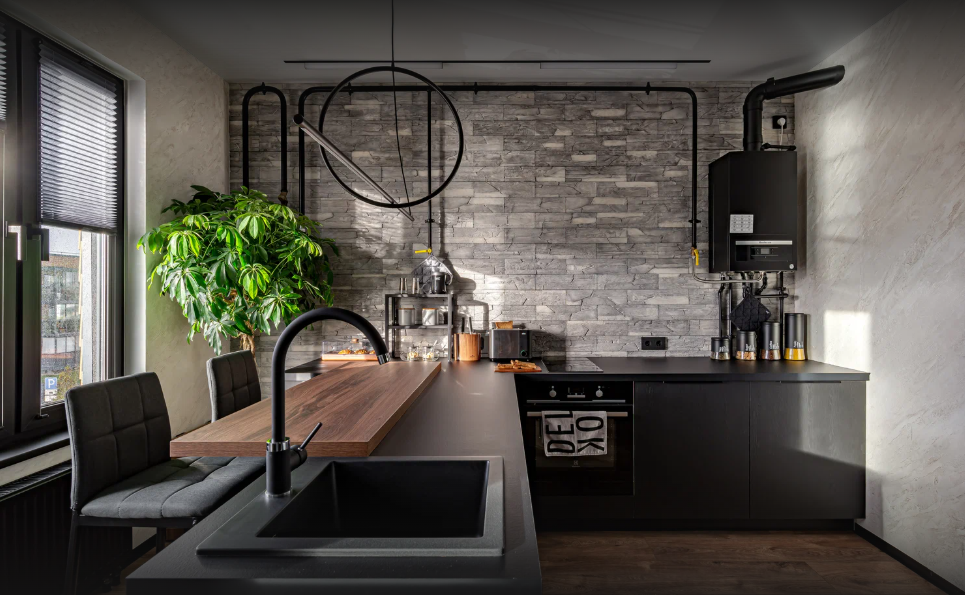 Создали дизайн-проект, где главная идея — создать атмосферный интерьер в брутальном стиле, наполненный светом и воздухом.