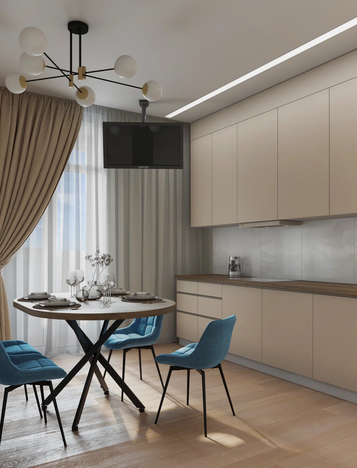 Был выполнен замер помещения, собраны все пожелания заказчика. Выполнены технические планы : план демонтажа. план монтажа, план мебели, план освещения, план выключателей, план розеток, план электрооборудования, план радиаторов, кондиционирования и вентиляции, план пола, план потолка, план экспликации, план инсталляции дверей, план теплых полов, развертки по стенам. Выполнены 3Д визуализации всех помещений. Выполнен подбор мебели, отдедки и оборудования.