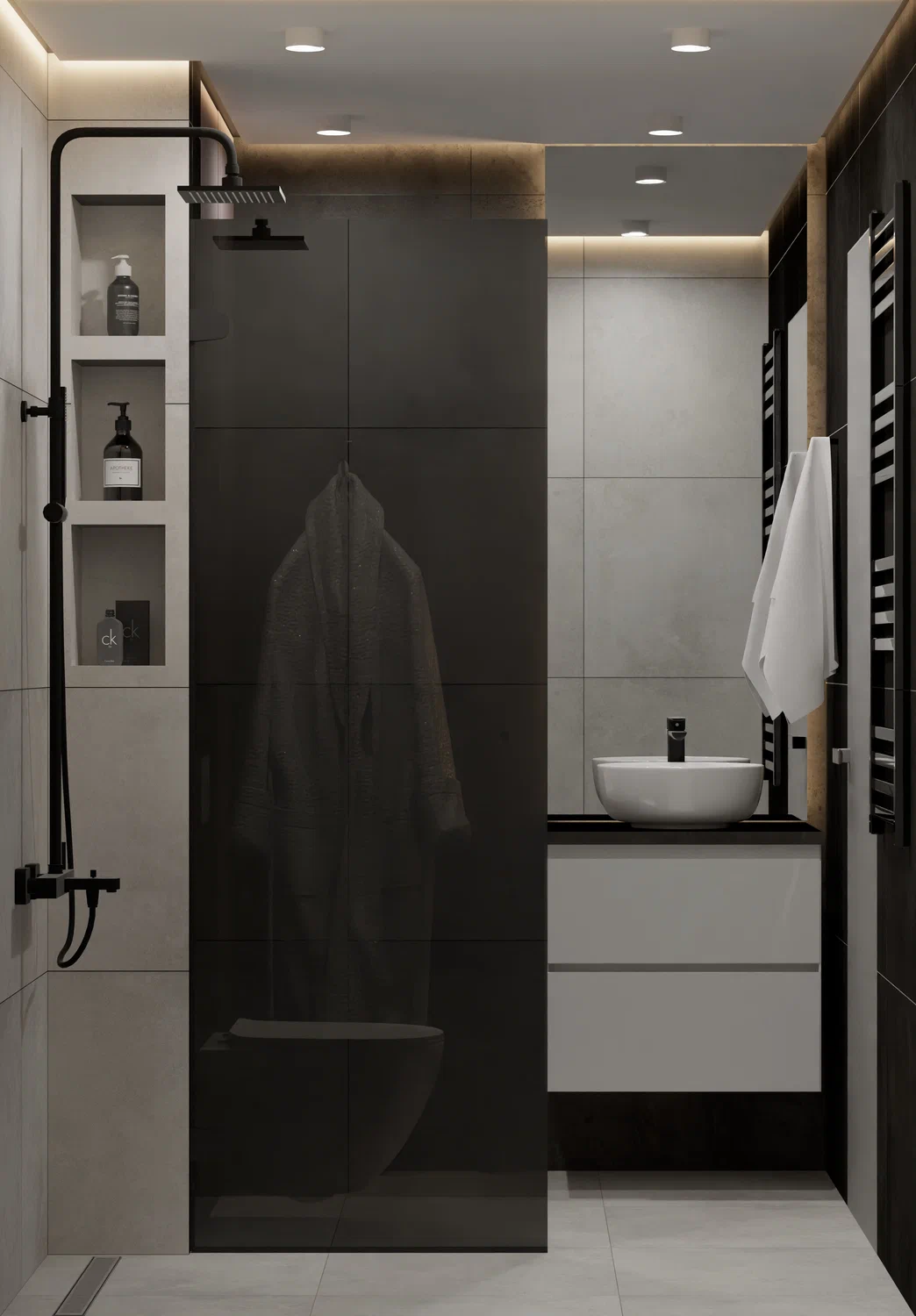 Наша команда создала дизайн-проект ванной комнаты, сочетающий современный стиль и функциональность. Мы проделали тщательную работу над каждой деталью: от подбора плитки и мебели до освещения и аксессуаров. Результат – элегантное пространство, где гармонично сочетаются удобство и эстетика, призванное удовлетворить самые изысканные вкусы.