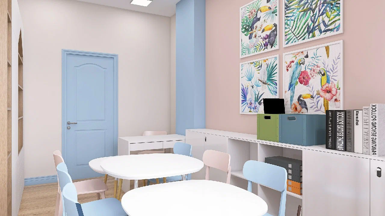 Дизайн проект и уже реализация кабинетов для психолога и ИЗО. Соответствует всем нормам и сертификатам. Уютные пространства, светлые и максимально комфортные и эргономичные
