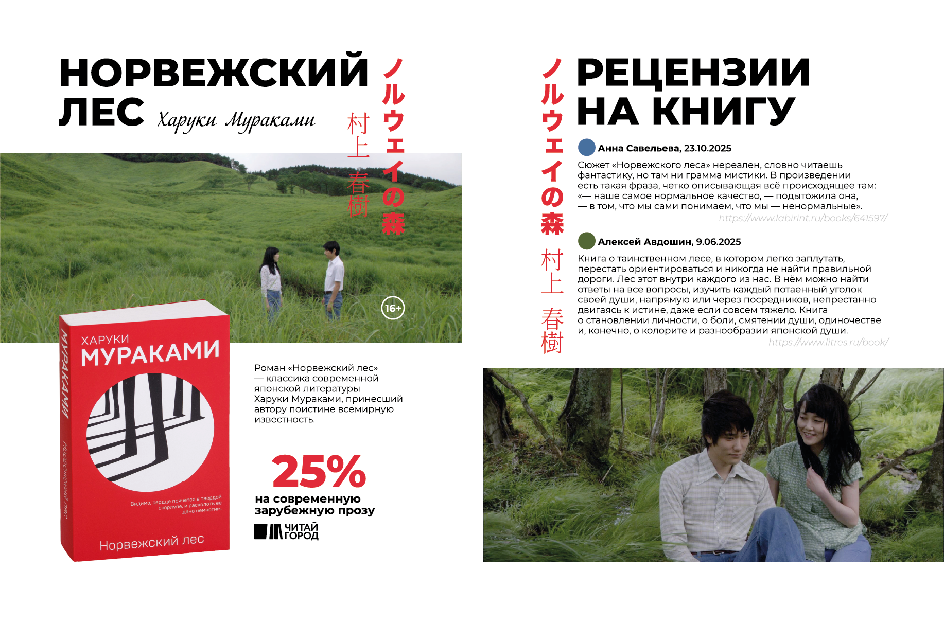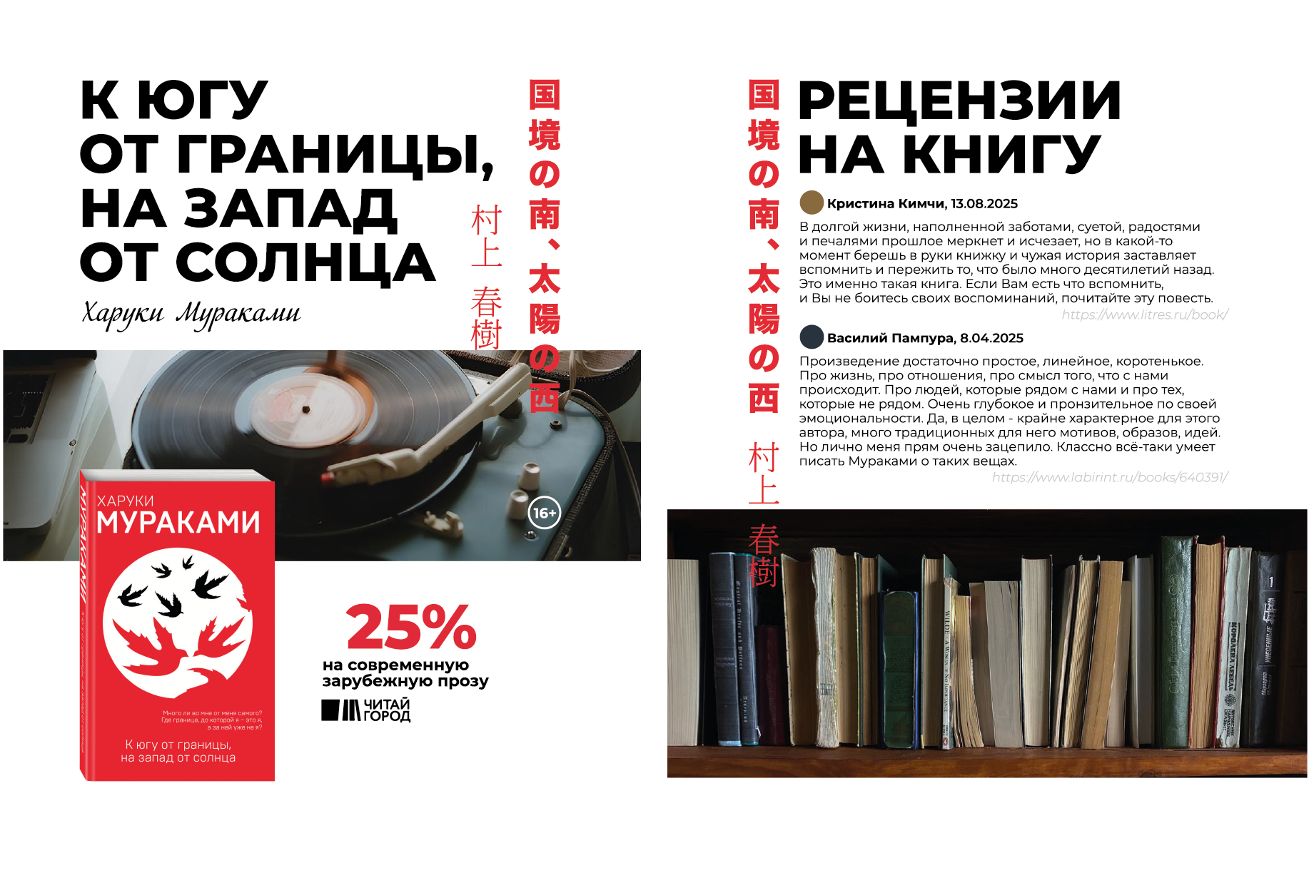 Задача проекта — создать визуал, который пробудит интерес к романам Харуки Мураками и мотивирует аудиторию посетить книжные магазины. В центре концепции — передача меланхоличной, но глубокой атмосферы произведений. Средствами Adobe Illustrator была разработана композиция, которая намеком на сюжет и эмоциональный подтекст книги вовлекает потенциального читателя, приглашая его лично погрузиться в мир романа.