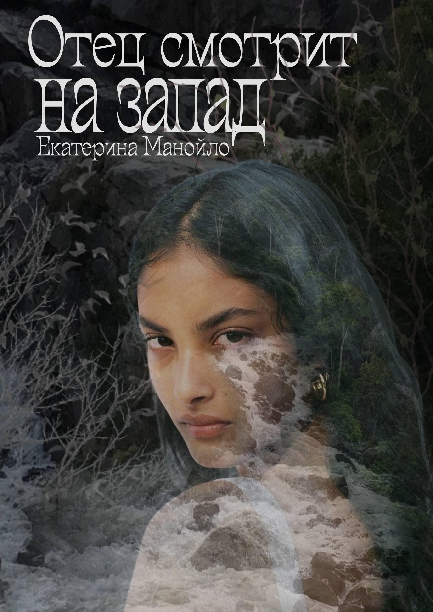 Разработка обложки для книги "Отец смотрит на запад" с использованием эффекта двойной экспозиции.