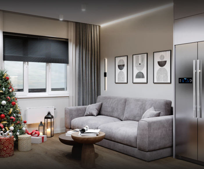 Квартира для семейной пары с маленьким ребенком (в будущем для 2х детей). Размер помещения: 72 кв. м. Была произведена перепланировка, перенос кухни в более просторную комнату, для того что бы сделать кухню-гостиную. Увеличен сан .узел , для того что бы разместить зону шкафов, а так же поставить просторную ванную.