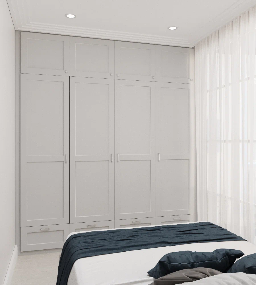 Зону спальни отделили стеклянной перегородкой, чтобы не лишать хозяйку естественного освещения. Интерьер выполнен в современном стиле с небольшими классическими элементами.