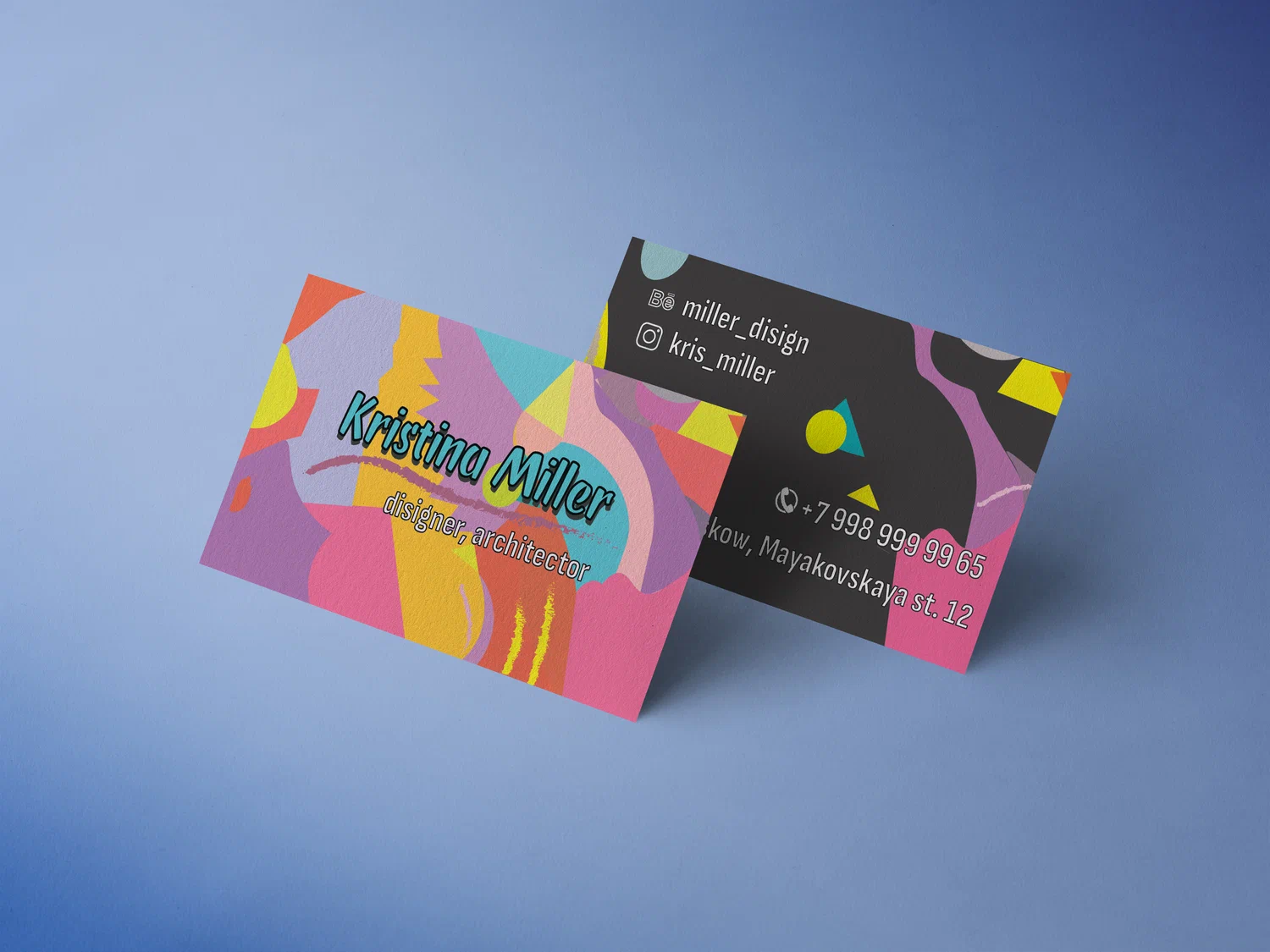 Визитка для дизайнера с моим фоном. Макет выполнен в Adobe Illustrator.