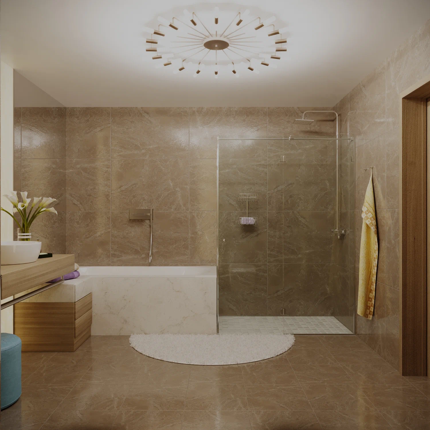 Визуализация красивого санузла, на полу никто не поскользнулся.